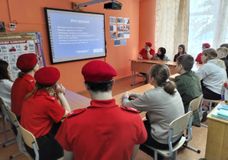 В завершении мероприятия Юнармейцы и обучающиеся стали участниками сетевой акции и ответили на 20 вопросов викторины «Мы землю толкали ногами…».