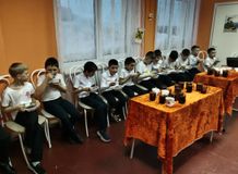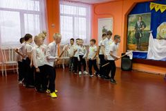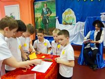 Перед мероприятием, мальчики распределились на 2 полка. Преображенский и Семеновский и под музыкальное сопровождение строевым шагом зашли в зал. Далее, вспомнили интересные факты о детских и юношеских годах будущего императора.