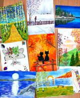 В результате получились яркие, осенние, зимние, весенние и летние пейзажи, выполненные акварельными красками. Дети остались довольны своими работами.
