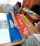 Затем обучающиеся преступили к выполнению коллективной работы – праздничного плаката.