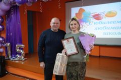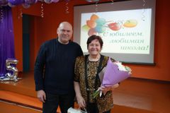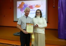 Ветераны педагогического труда, педагоги школы награждены благодарственными письмами и почетными грамотами. Несмотря на сорокаградусный мороз,  Олег Игоревич Шереметьев подарил женщинам цветы.