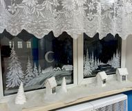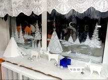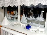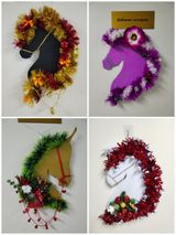 На фоне зимнего пейзажа, на подоконниках окон и столах разместились Олени, Юрта и новогодние Елки, дверь каждого кабинета украшает венок в стиле символа года «Огненная лошадь», изготовленные руками ребят.
