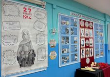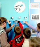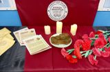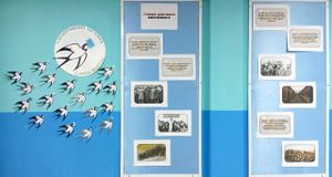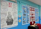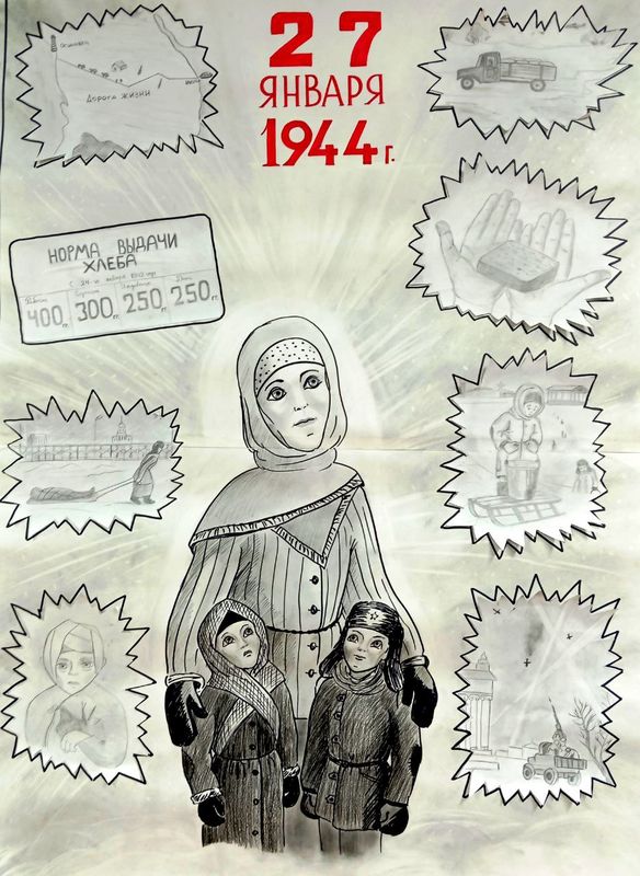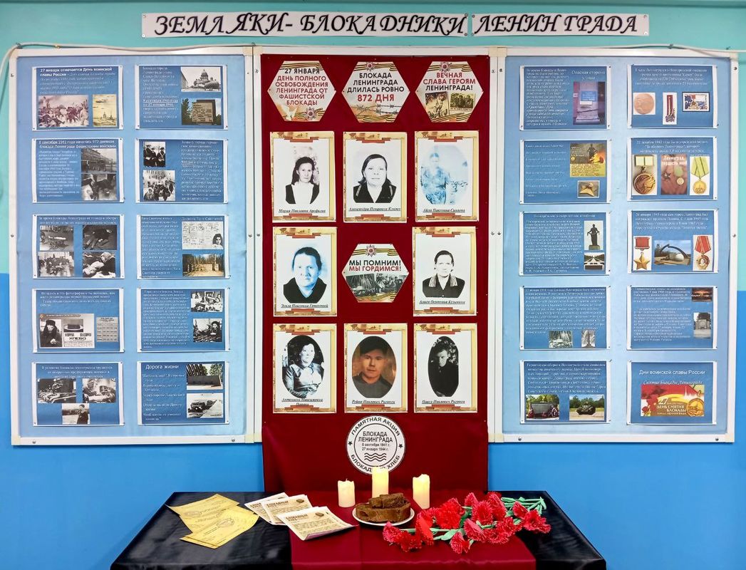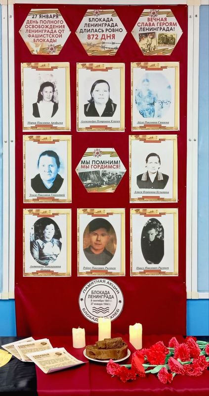 В коридоре школы был оформлен стенд «Земляки – блокадники Ленинграда» и экспозиция «Блокадный хлеб». Также стенд с материалами о блокаде, а рядом со стендом обучающиеся прикрепили изображение блокадной ласточки как символ надежды блокадного города.