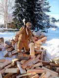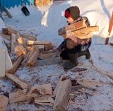 Прибыв на место, волонтеры быстро распределили обязанности: одни кололи дрова, другие ребята носили и укладывали их в дровенник.