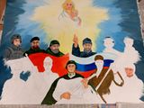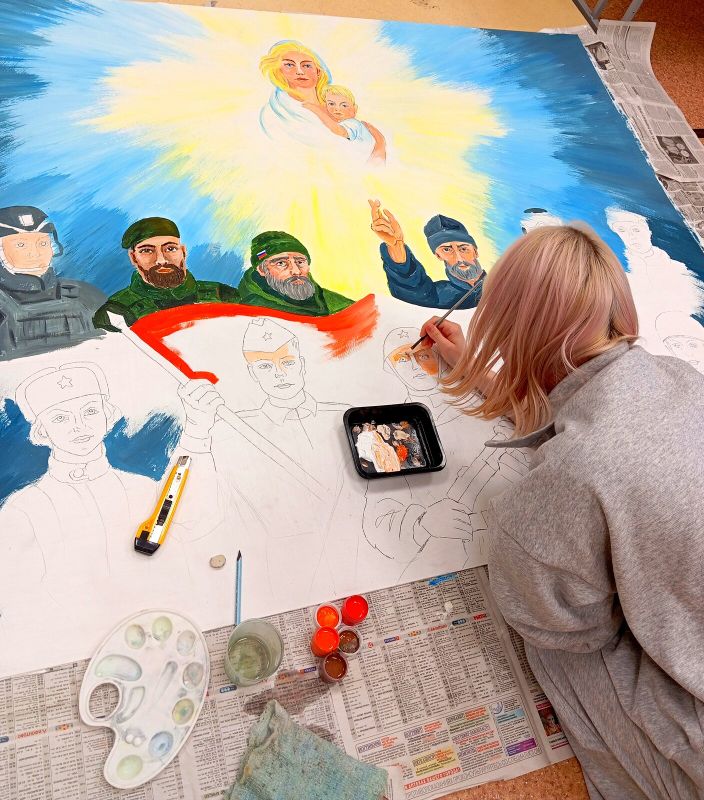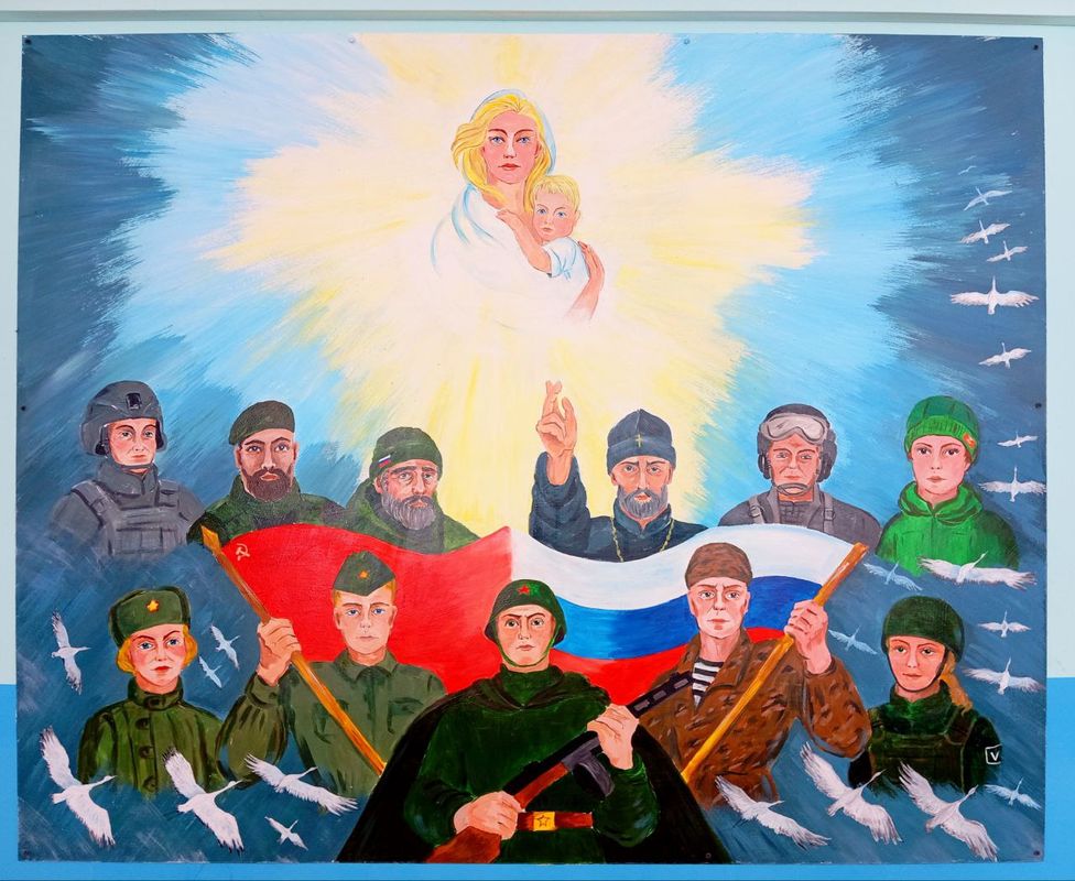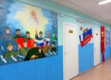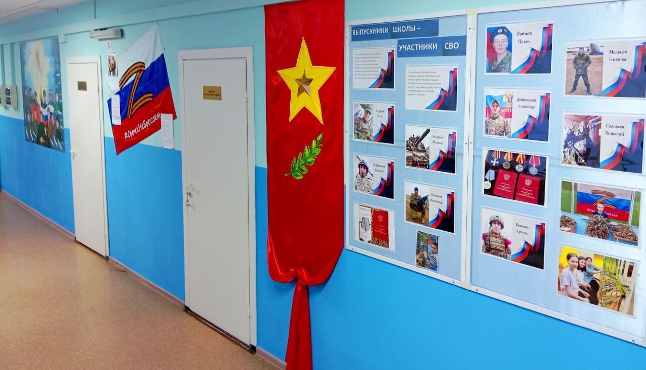 Картина является продолжением темы, где располагается стенд посвященный выпускникам школы – участникам СВО.