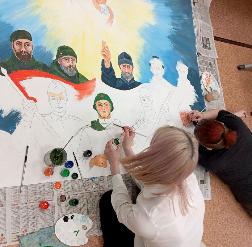 Целый месяц ребята трудились и создавали патриотическую картину-пано «Защитники Отечества».