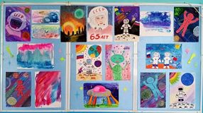 Все работы украсили выставку рисунок в коридоре школы.🌠👩‍🚀🚀
