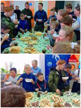 В завершении игры участников ожидал привал, вкусный обед – гречневая каша и горячий чай.